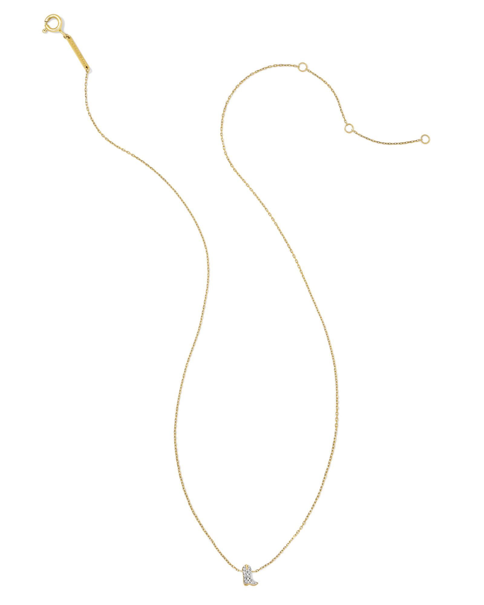 Tiny Cowboy Boot 14k Yellow Gold Pendant Necklace in White Diamond
