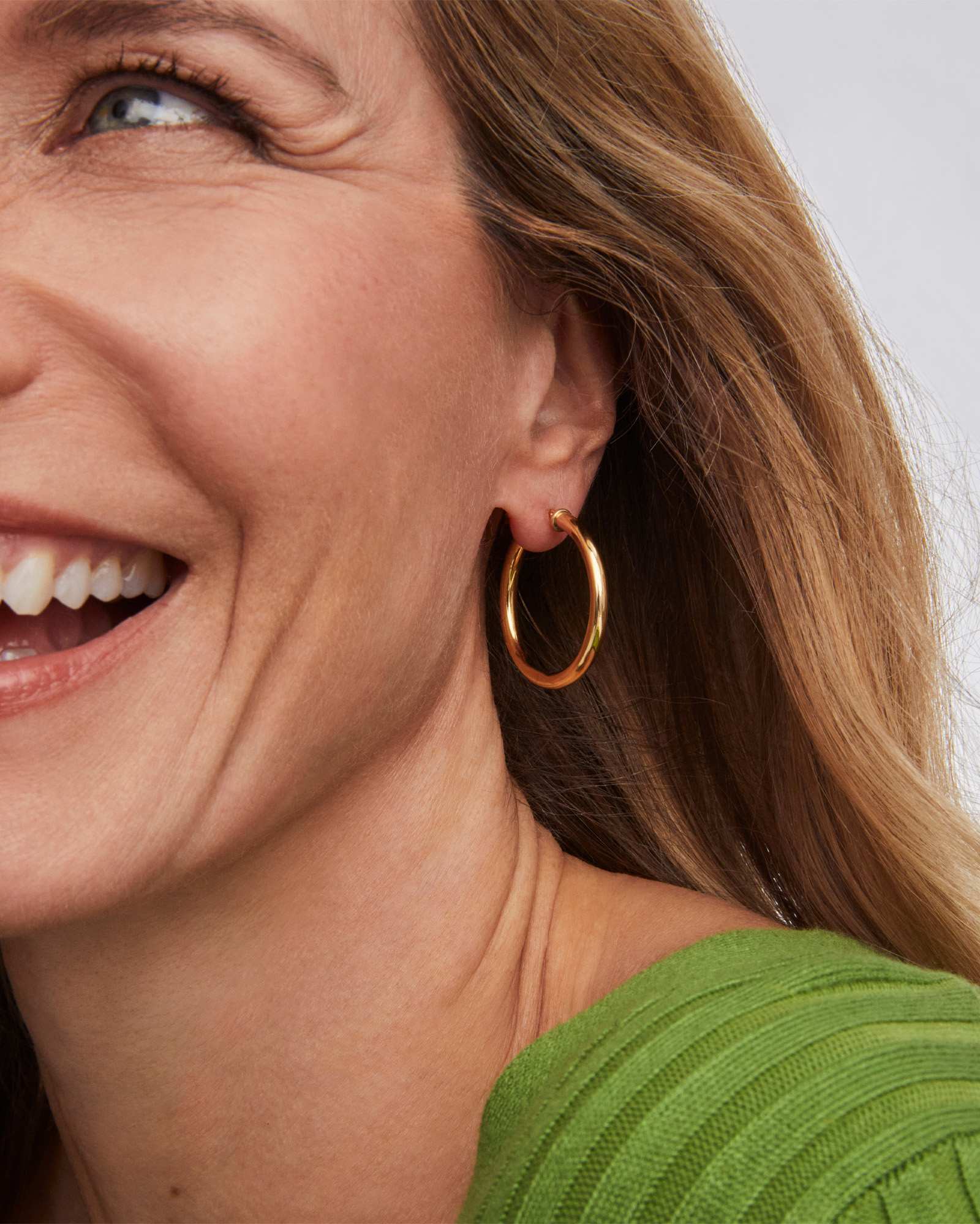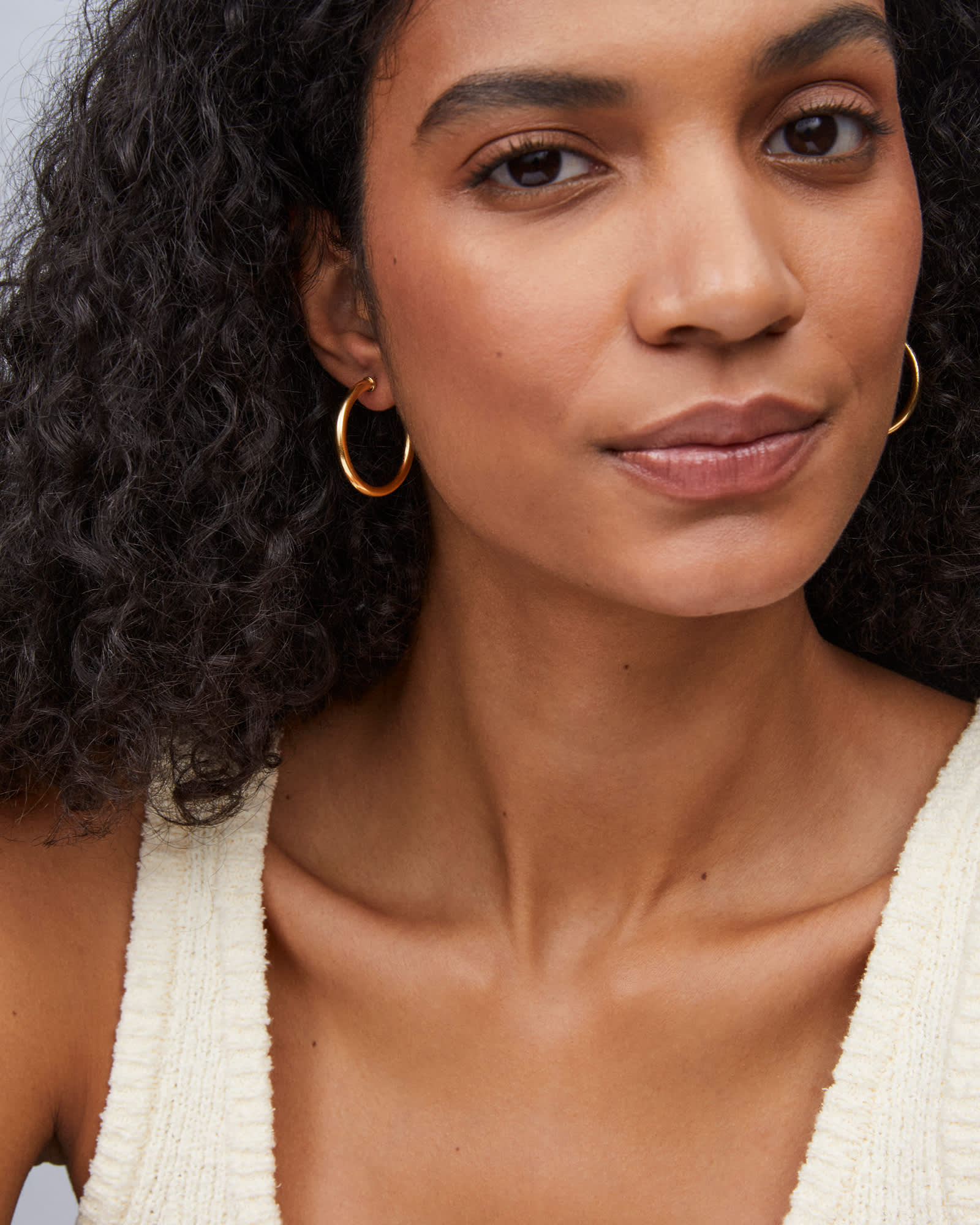 Don’t freak out, but you’ve found it: it’s the ideal hoop earring! Our Tube Medium 30mm Hoop Earrings in 18k Gold Vermeil have a classic hoop silhouette, are crafted with elevated materials, and they’re hollow for lightweight wear. What’s not to love? You’ll be wearing these again and again (and again).