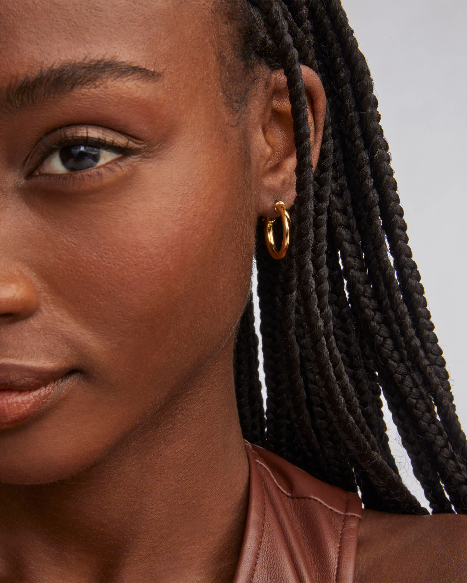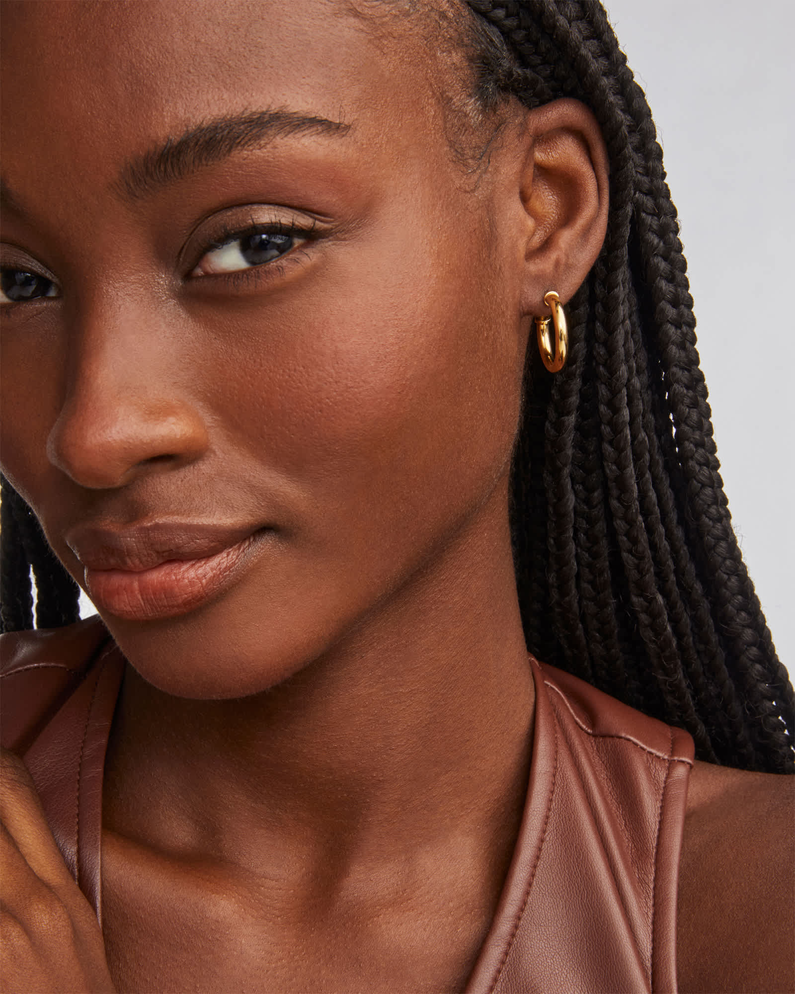 Tiny and totally cute, the Tube Small 20mm Hoop Earrings in 18k Gold Vermeil are a winning pair. Featuring a classic hoop silhouette and crafted with elevated materials, these petite hoops are about to be the MVP (most valuable pair) in your earring lineup.