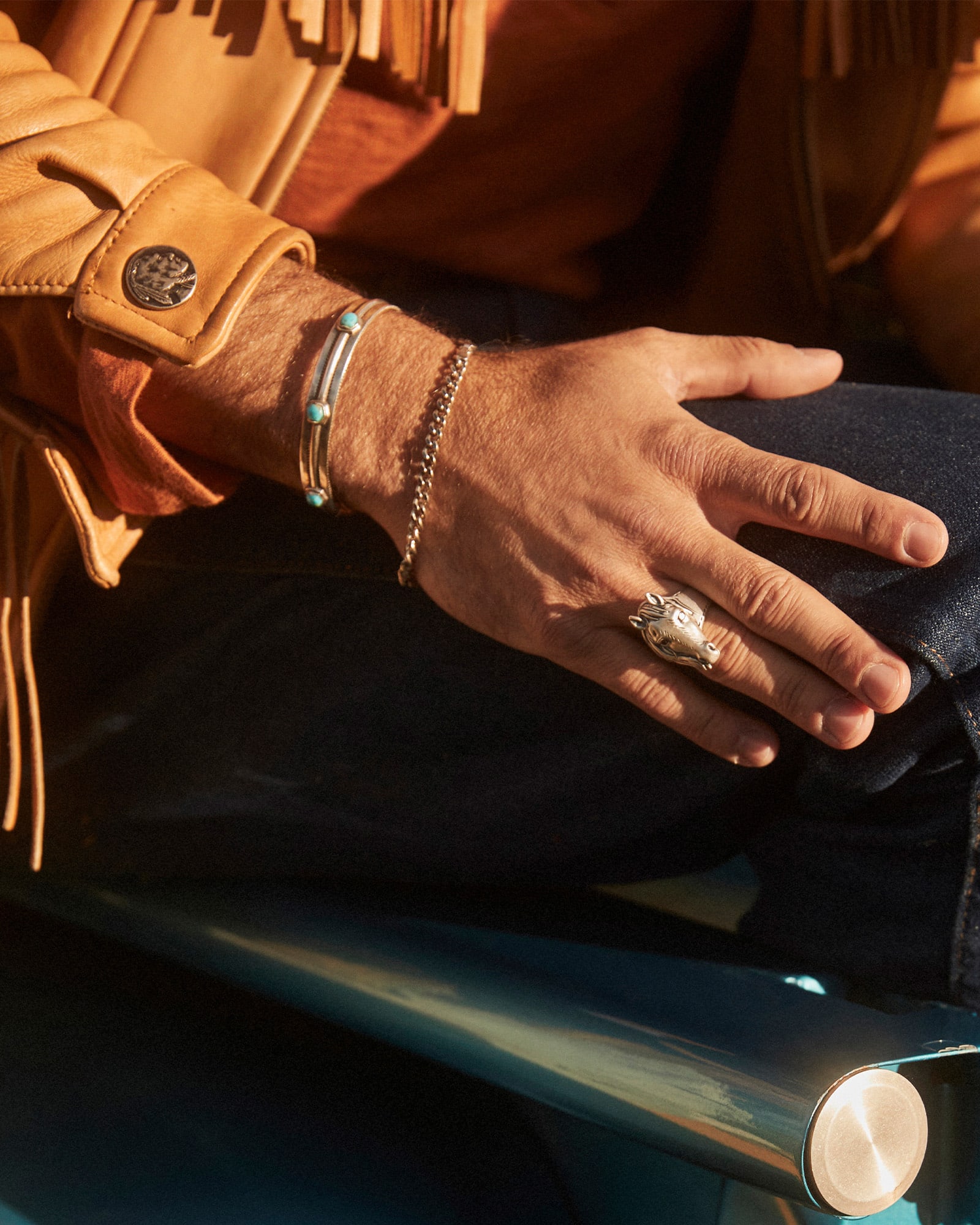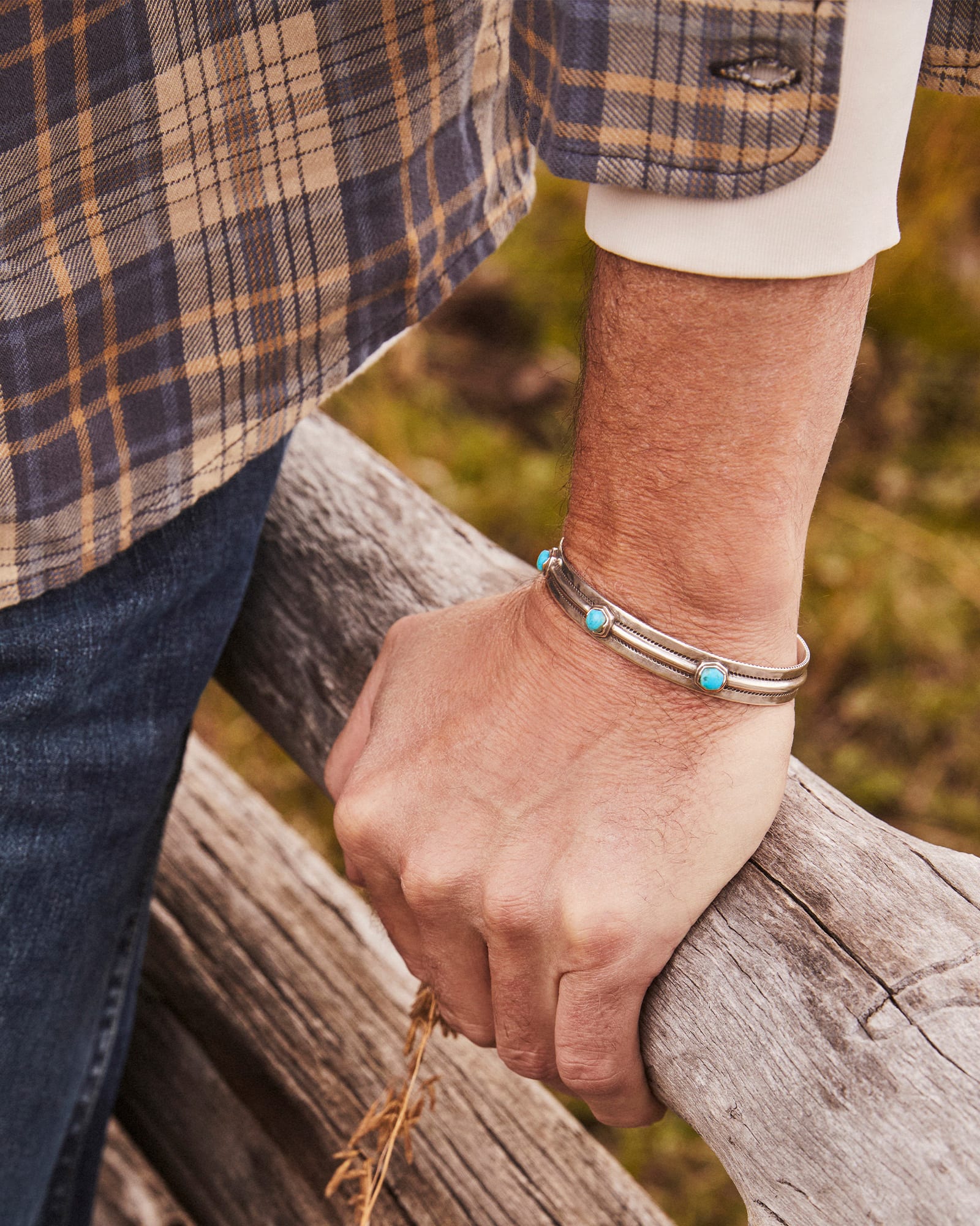 A perfect balance of modern design and natural details, the Weston Cuff Bracelet is the heirloom-quality cuff you’ll never want to take off. Turquoise stones in our custom Davie shape stud this textured cuff, which you can adjust for a custom fit. This bracelet is a part of Yellow Rose by Kendra Scott—a brand that celebrates ranch life with Kendra Scott staples alongside select curated jewelry pieces and accessories.
