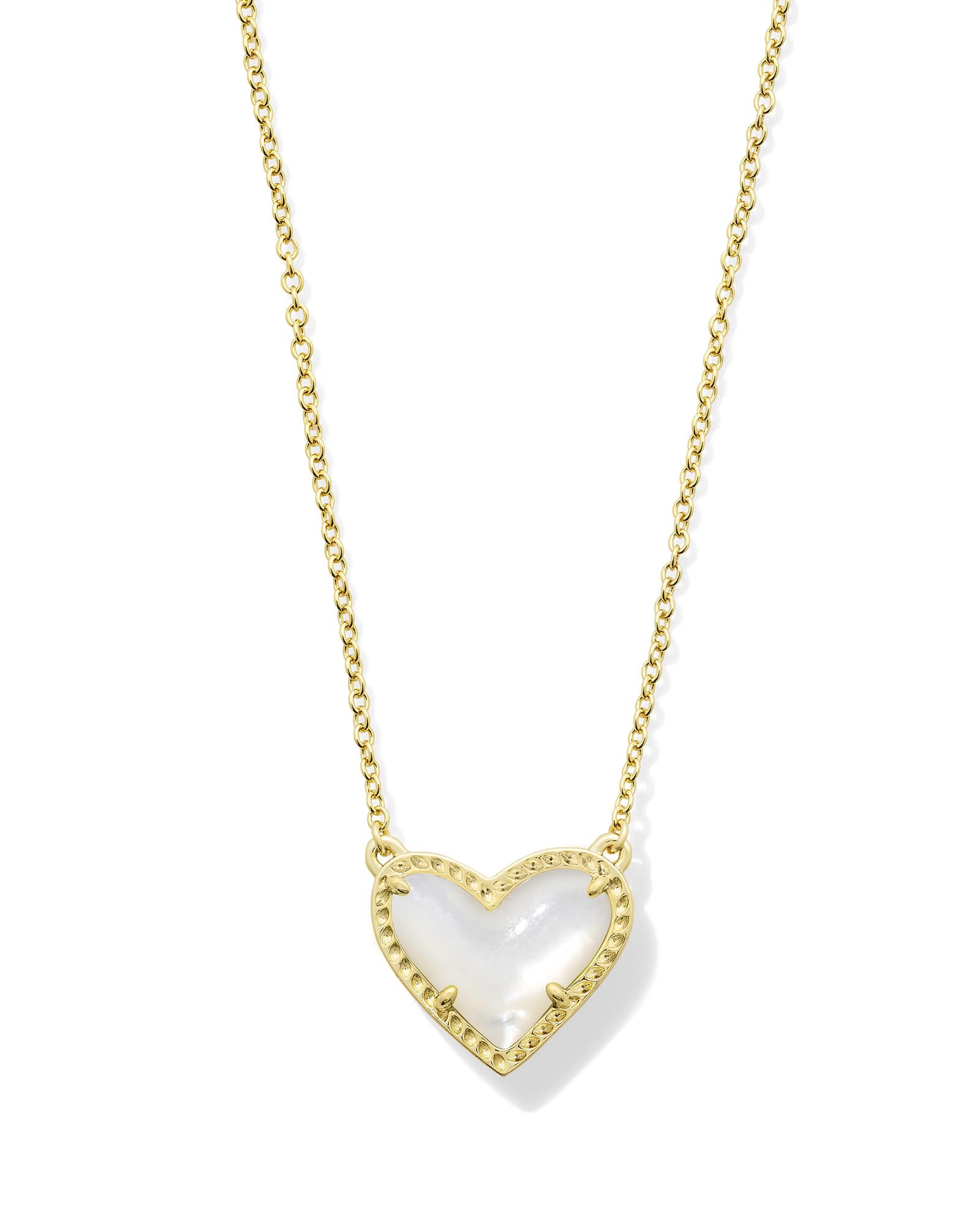 Ari Heart Gold Pendant Necklace in Ivory Mother-of-Pearl