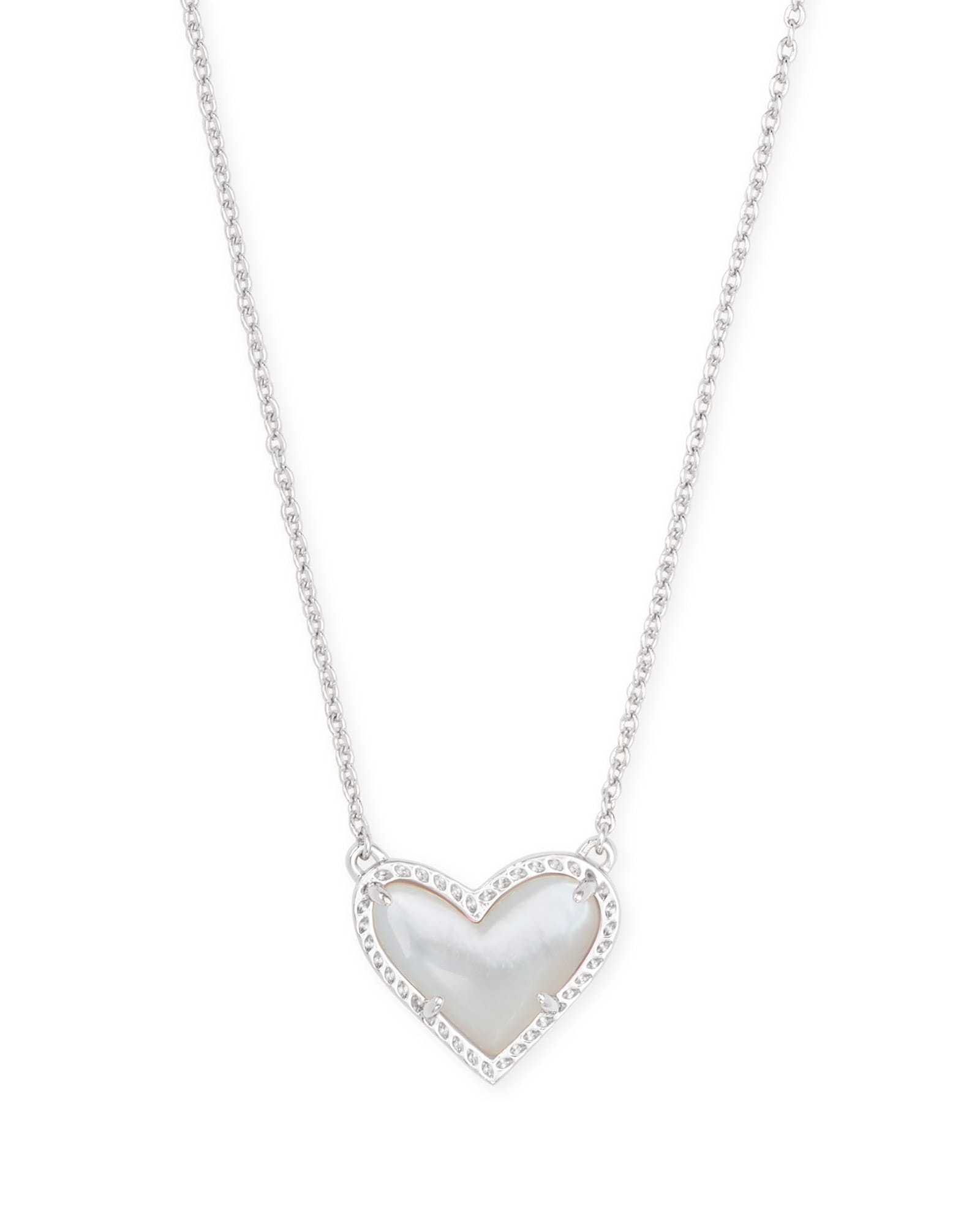 Ari Heart Silver Pendant Necklace in Platinum Drusy