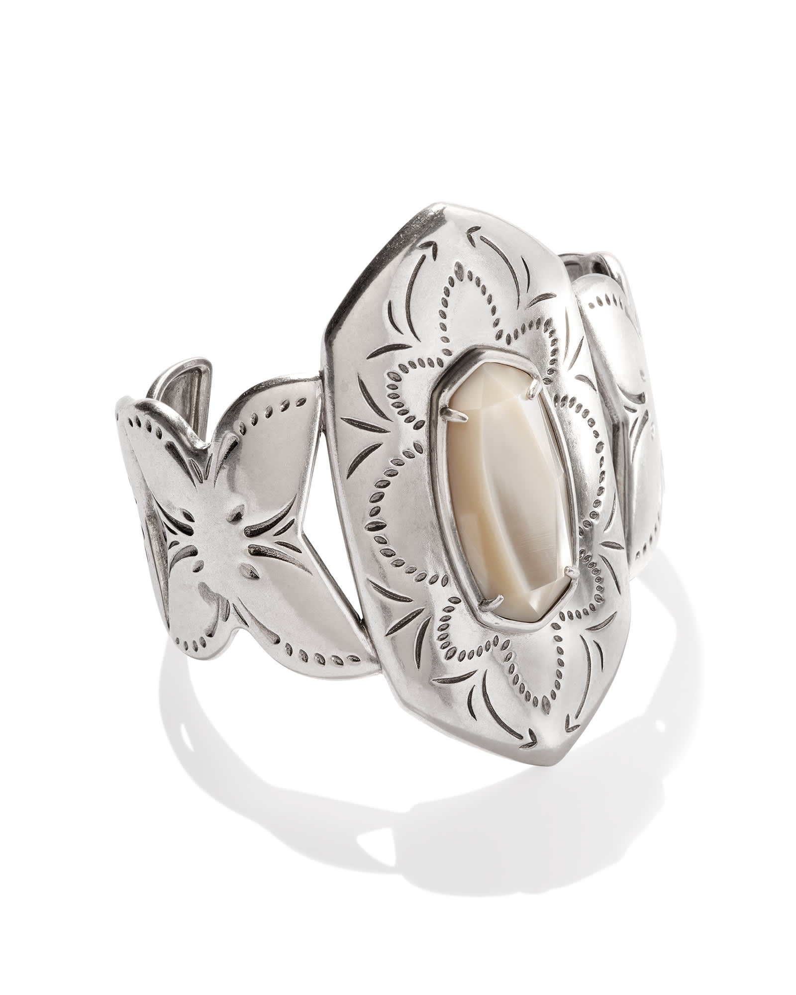 Keziah Vintage Silver Cuff Bracelet in Natural Mother-of-Pearl